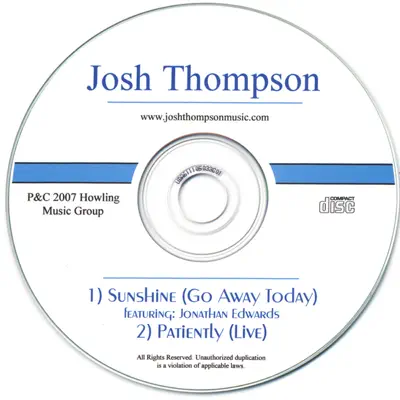 "Sunshine" Featuring Jonathan Edwards -singleJosh Thompson 1 Sunshine Featuring Jonathan Edwards2 Patiently- Live2007 Howling Music Group